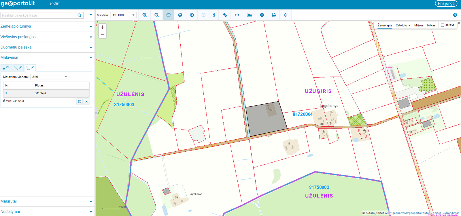 Sklypas apimantis 300 aro plotą. Jame yra pastatas su valda, užimančios 20 arų plotą, o likusi dalis sklypo skirta žemdirbystei ar kitoms paskirtims – ariama žemė 280 aro dydžio.